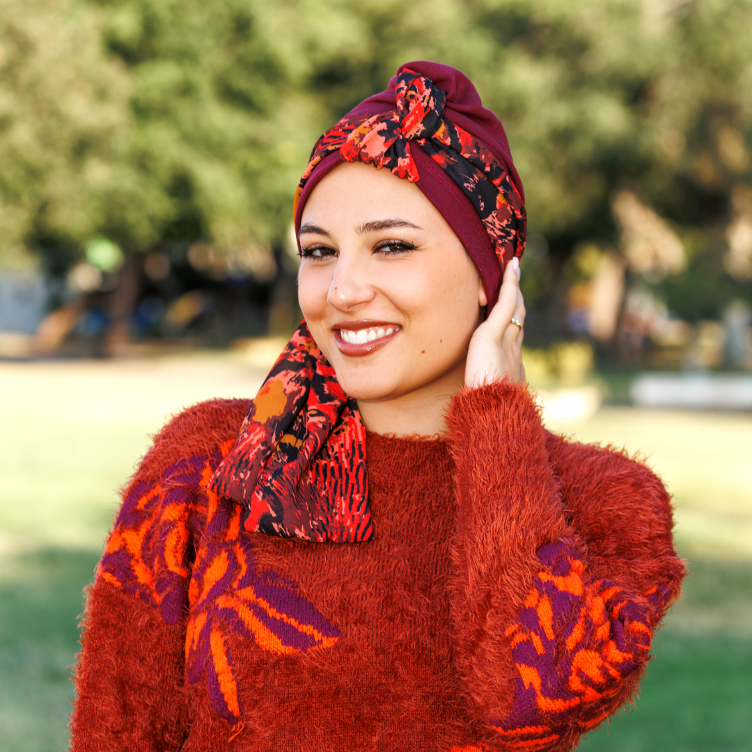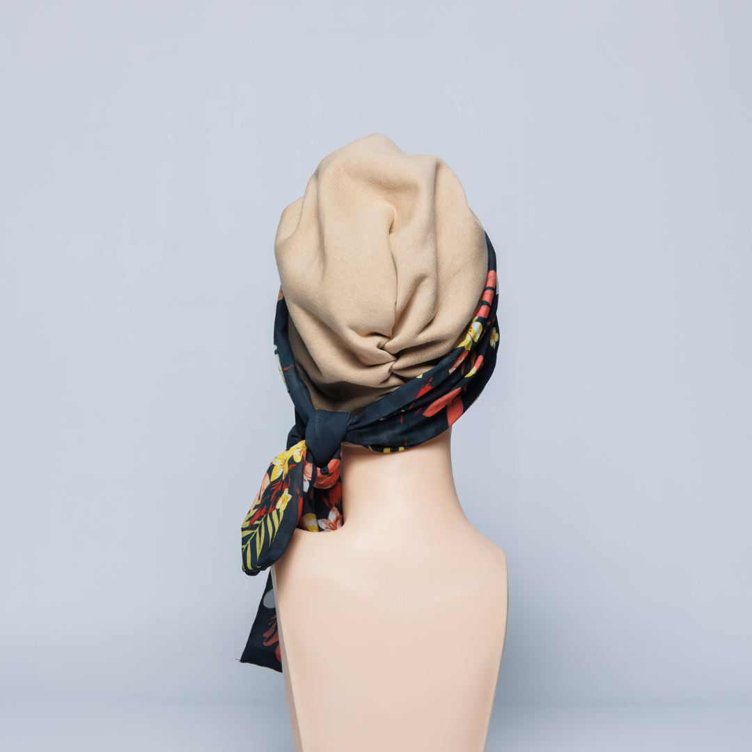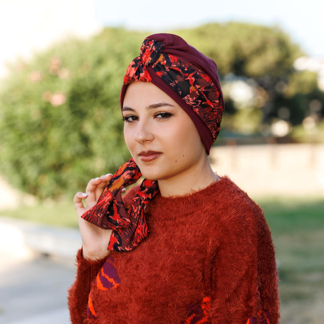Avvolgente e armonioso nei volumi reso particolare da una morbida fascia che annodata sulla parte frontale accarezza tutta la circonferenza cadendo morbida su un lato, insomma un capo che renderà prezioso il tuo outfit!