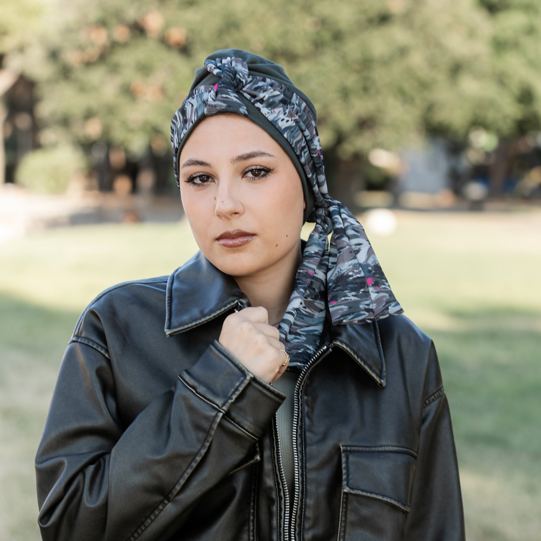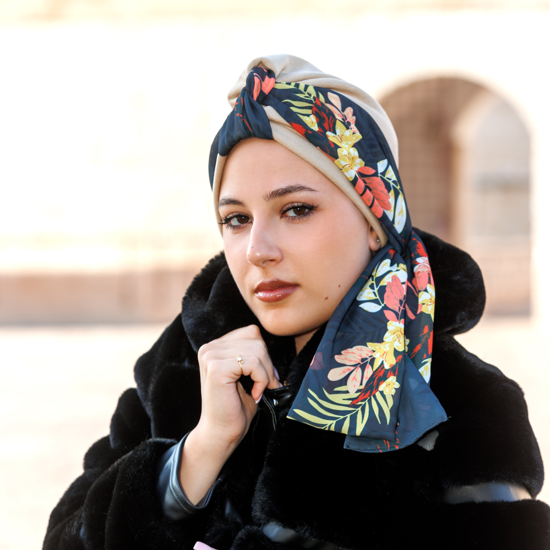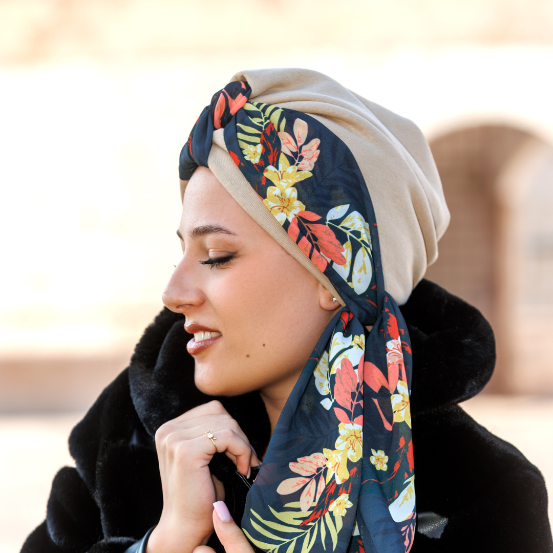 Avvolgente e armonioso nei volumi reso particolare da una morbida fascia che annodata sulla parte frontale accarezza tutta la circonferenza cadendo morbida su un lato, insomma un capo che renderà prezioso il tuo outfit!