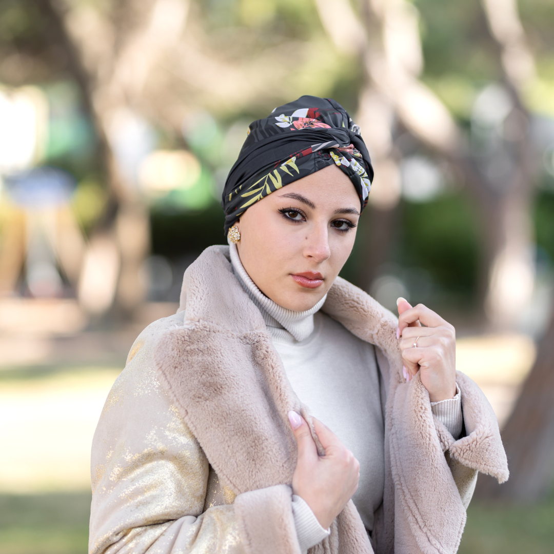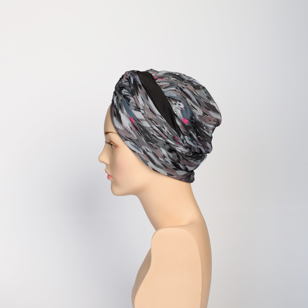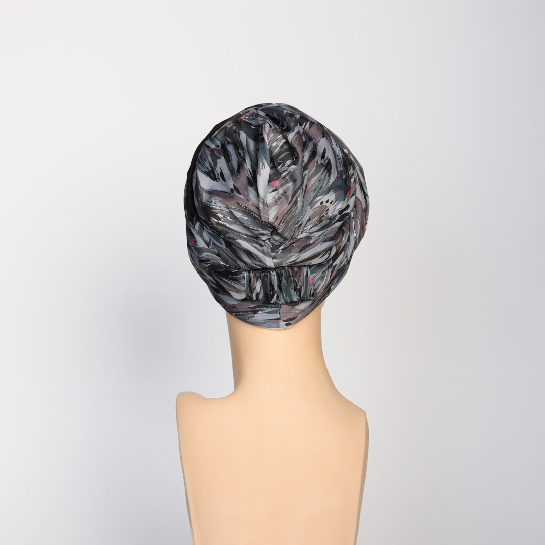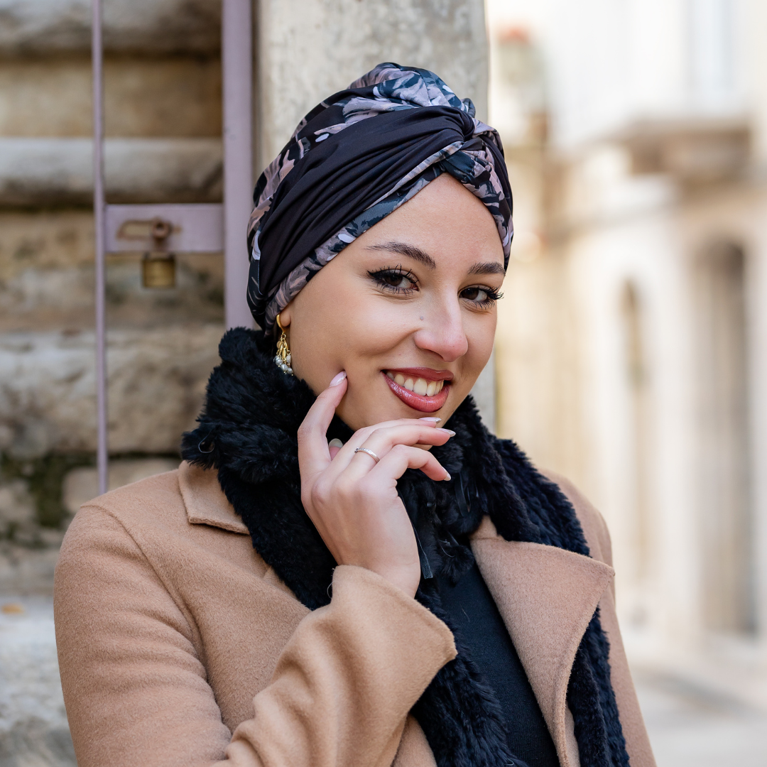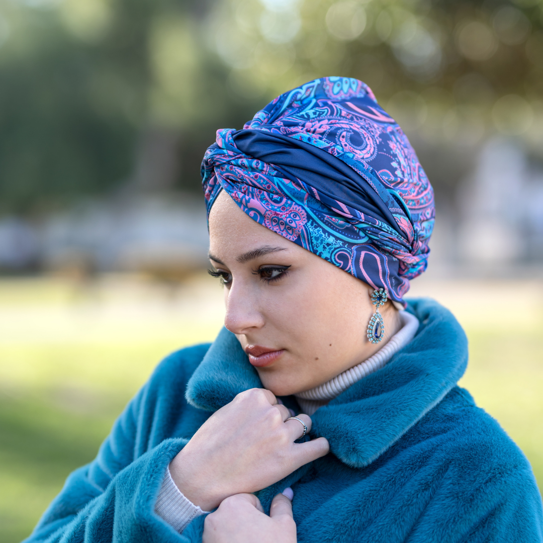 La caratteristica di questo modello è il contrasto che si crea tra la fantasia e la tinta unita delle fasce che si incrociano su di esso donando un effetto di completa armonia nei colori e nei volumi.