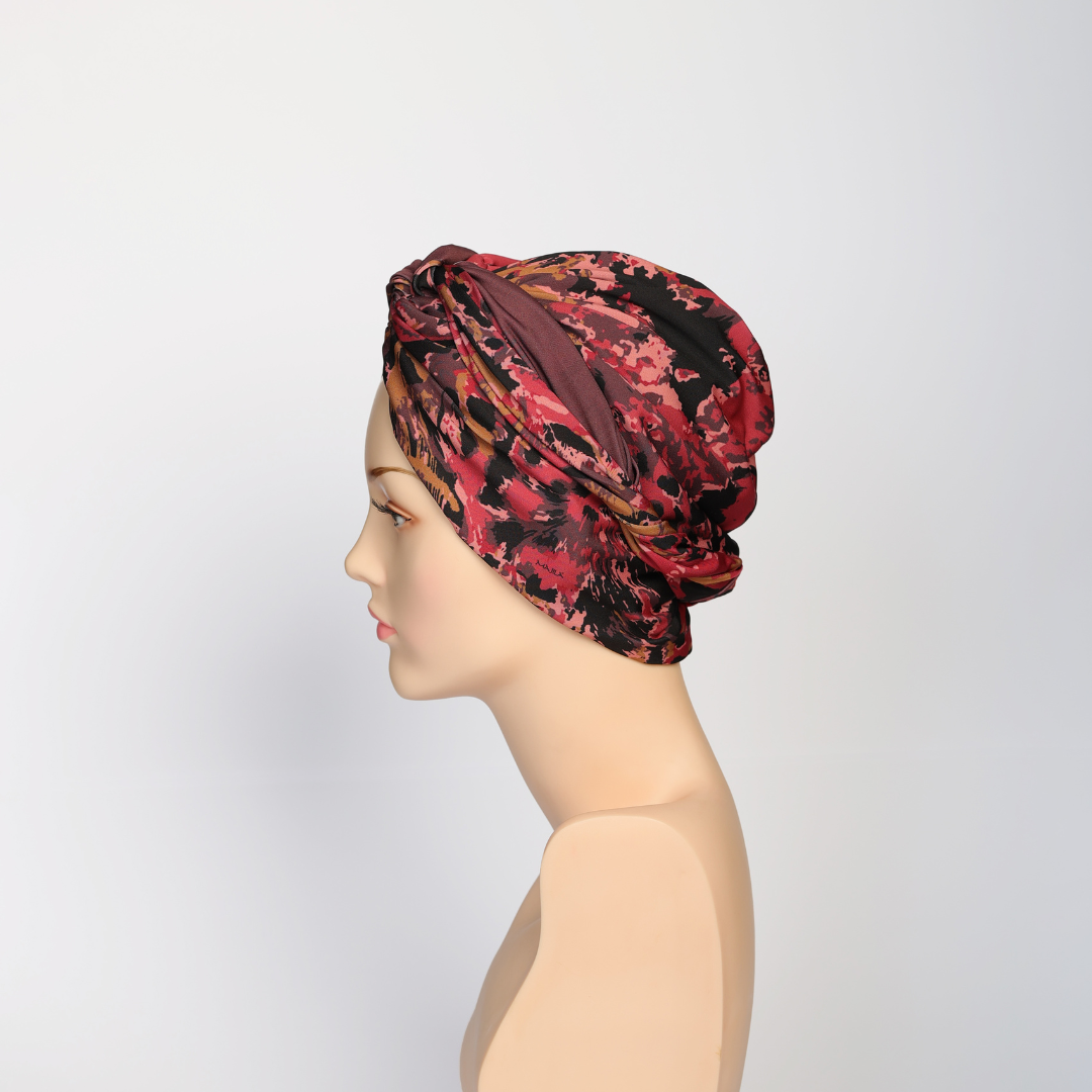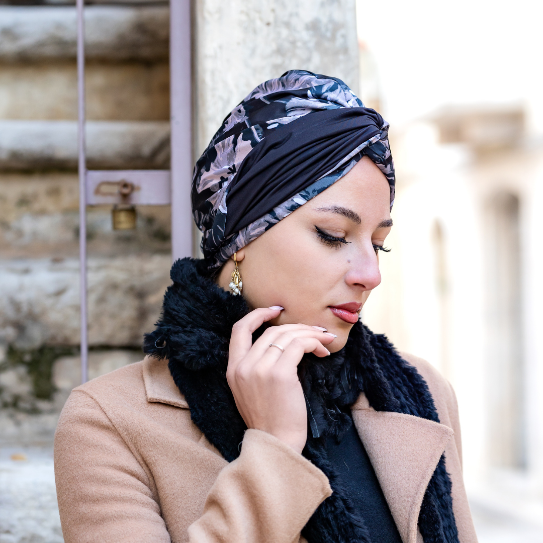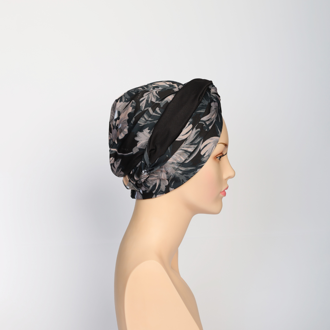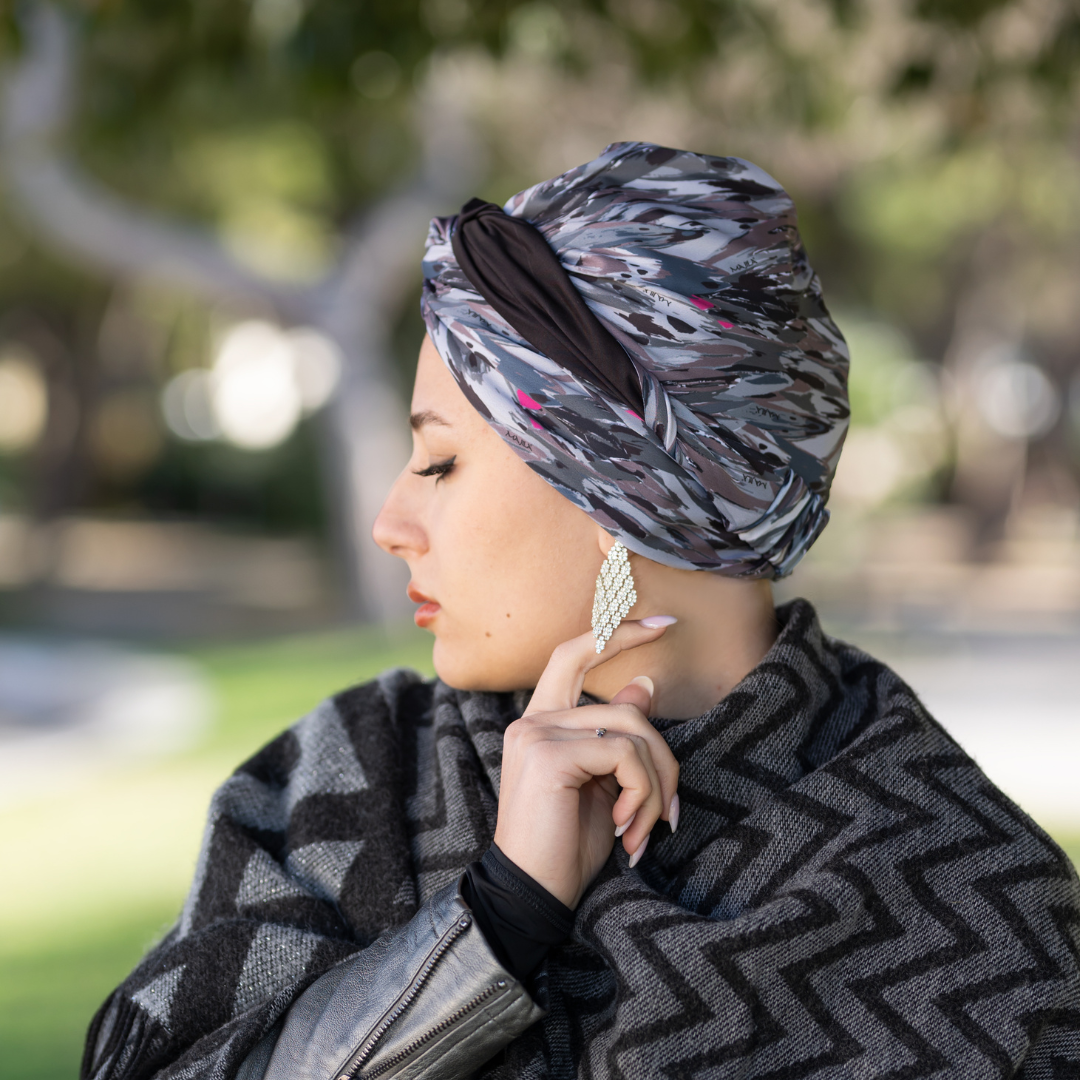 La caratteristica di questo modello è il contrasto che si crea tra la fantasia e la tinta unita delle fasce che si incrociano su di esso donando un effetto di completa armonia nei colori e nei volumi.