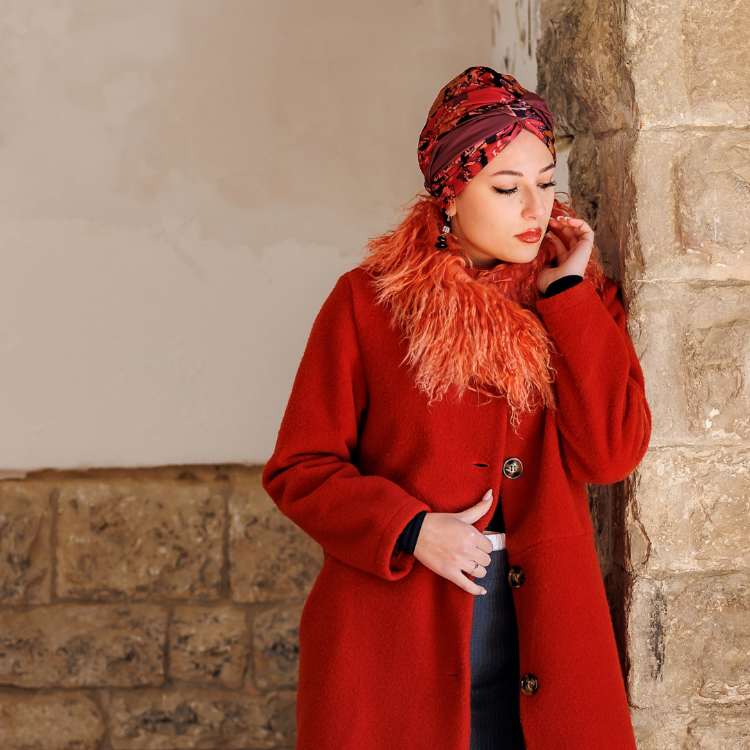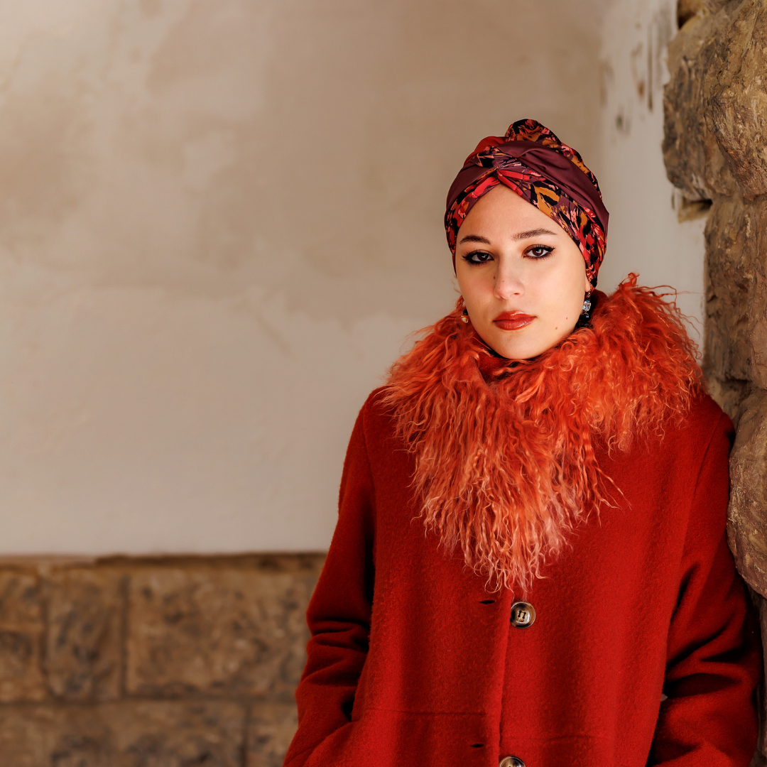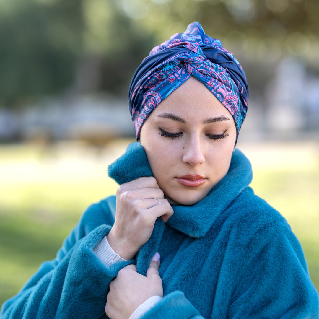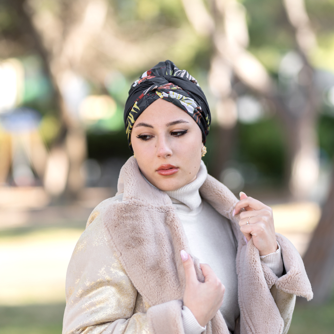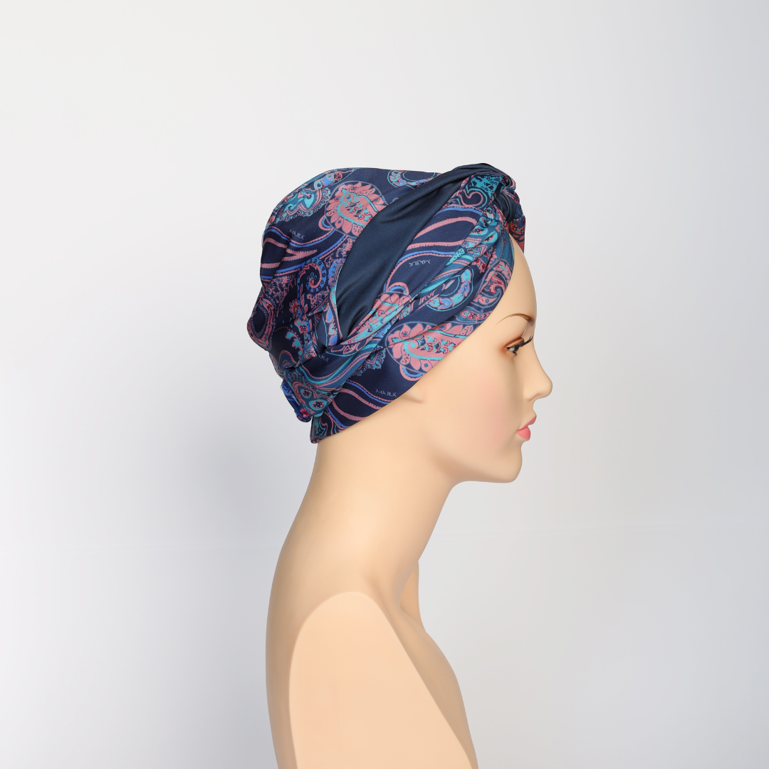 La caratteristica di questo modello è il contrasto che si crea tra la fantasia e la tinta unita delle fasce che si incrociano su di esso donando un effetto di completa armonia nei colori e nei volumi.